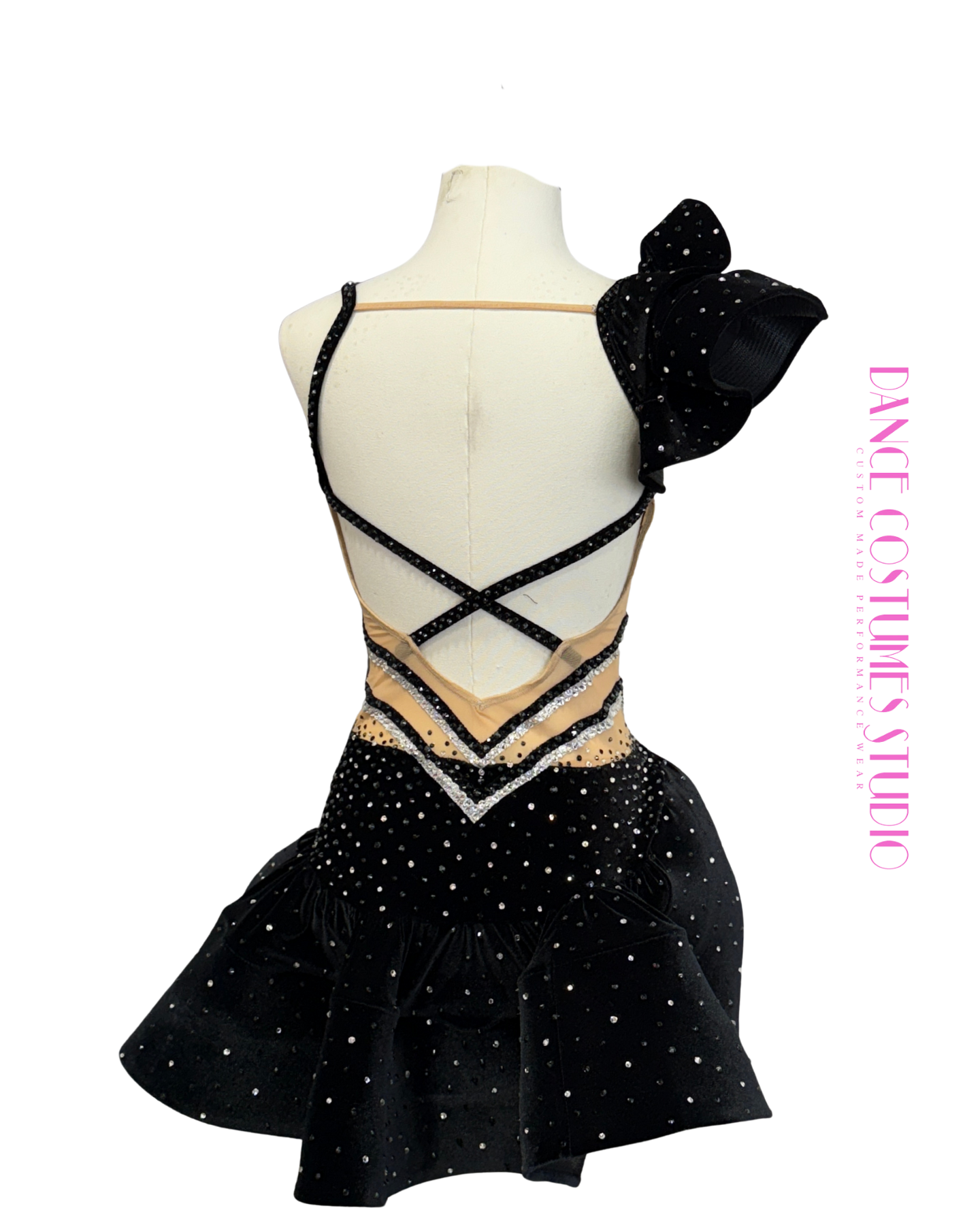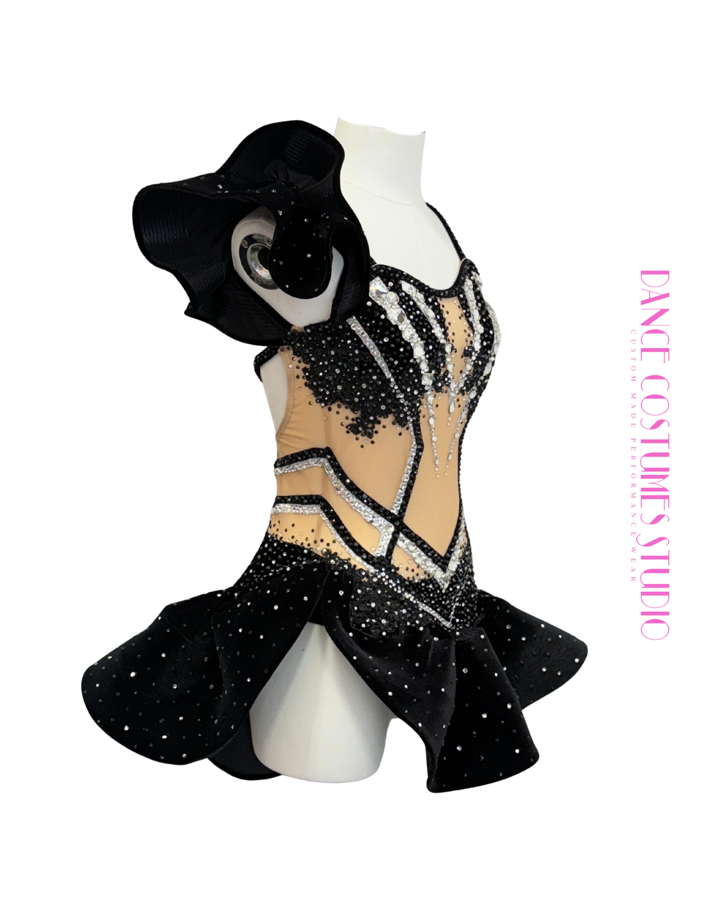 - Precision-placed black and silver rhinestones enhancing curves and movement